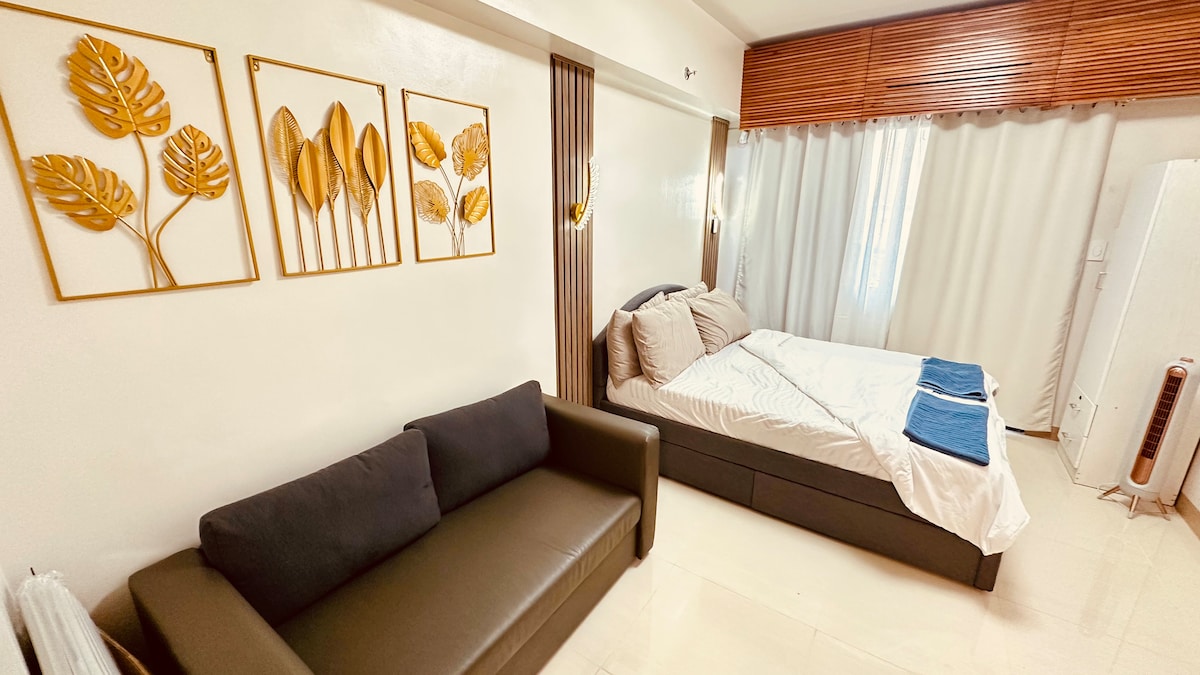 Unit bujang yang selesa di tengah-tengah Iloilo City ini menampilkan katil bersaiz king yang luas, sesuai untuk berehat. Ruang tamu termasuk TV 60 inci, menawarkan pengalaman hiburan yang sangat baik. Dapur kecil yang selesa dilengkapi untuk memasak ringan, menjadikannya ideal untuk penghuni tunggal atau pasangan. Terletak di hab kediaman pusat, unit ini menyediakan akses mudah kepada kemudahan tempatan, kedai, dan pengangkutan awam, memastikan gaya hidup yang selesa dan terhubung.