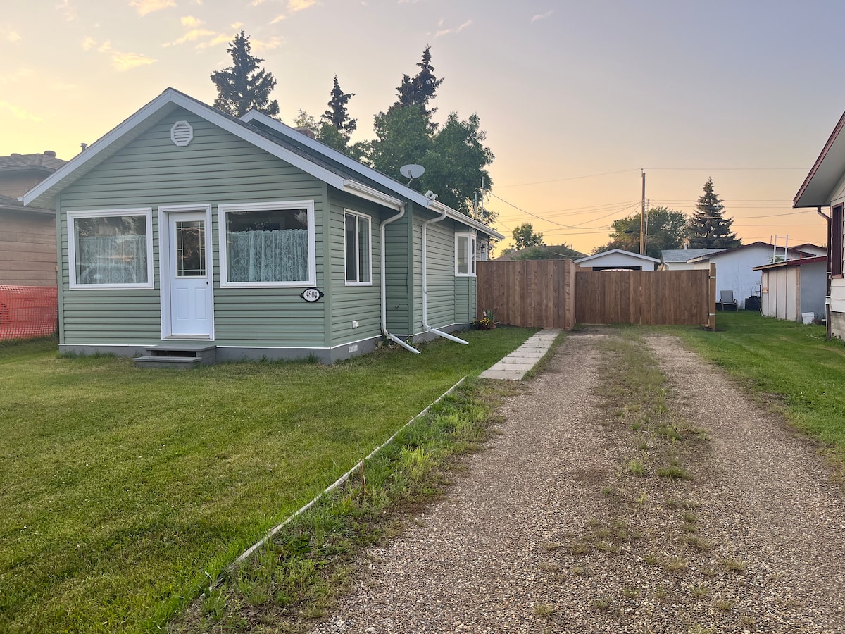 Located in the heart of Peace River this little 1950's wartime house is is centrally located by the Co-Op grocery store, and walking distance to the Board and Barrel, Boston Pizza and several liquor stores. It is just a block away from the Majestic Peace River and the walkway on the dyke. You can also access all of downtown and Riverfront Park on foot. Located in a quiet, established neighbourhood. If you are here for work or play this will suit your needs! The 2nd bedroom is upstairs left.