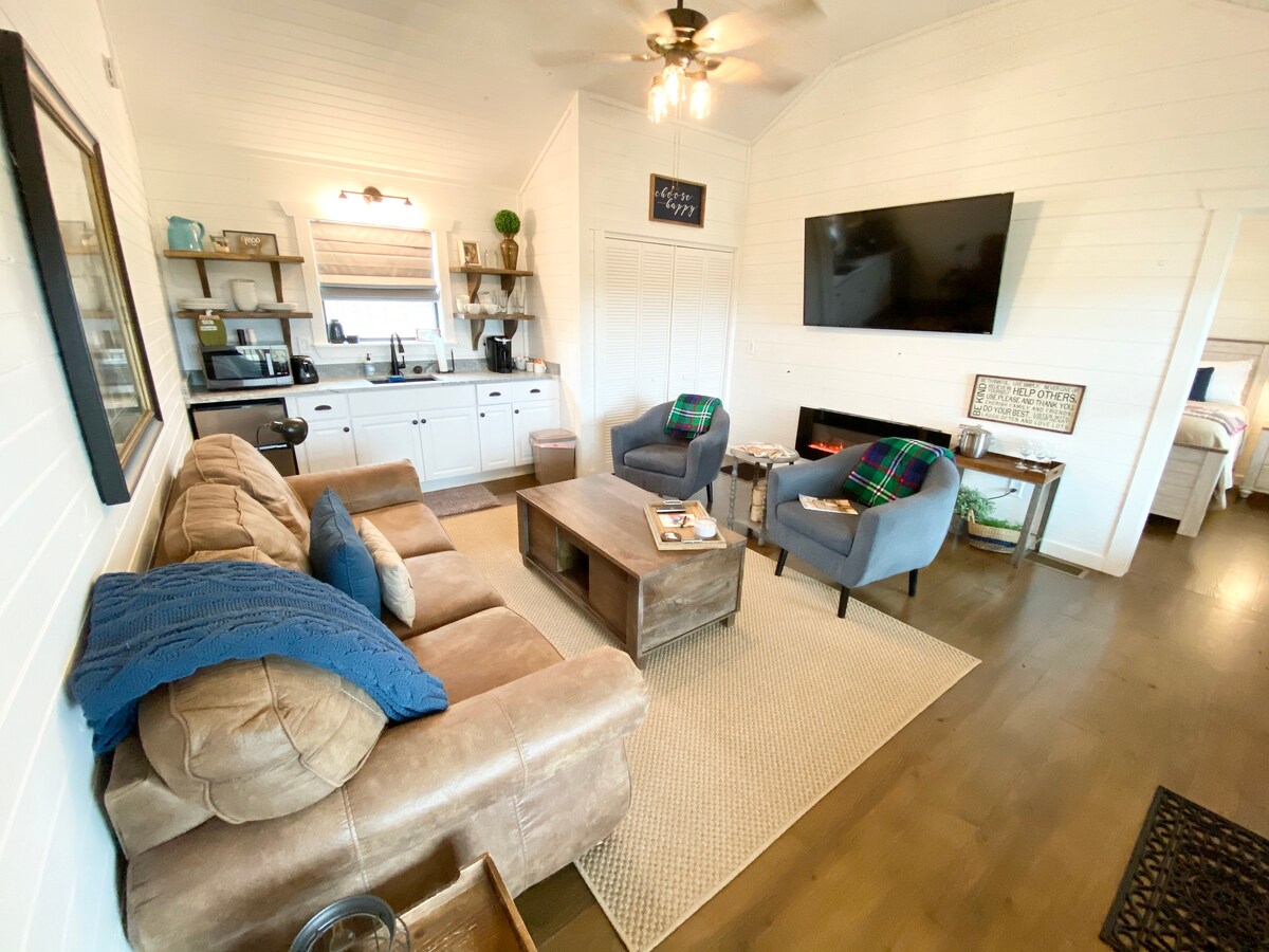 One of seven private cottages nestled among ancient oaks on Wrenwood Ranch — a 14-acre Hill Country property built by hand and with heart. Your own porch, private entrance, king bed, and full kitchen. More than 30 wineries line the 290 Wine Trail outside our gate, including Garrison Brothers Distillery. Fredericksburg is 20 minutes away. Come ready to slow down and stay longer than you planned.