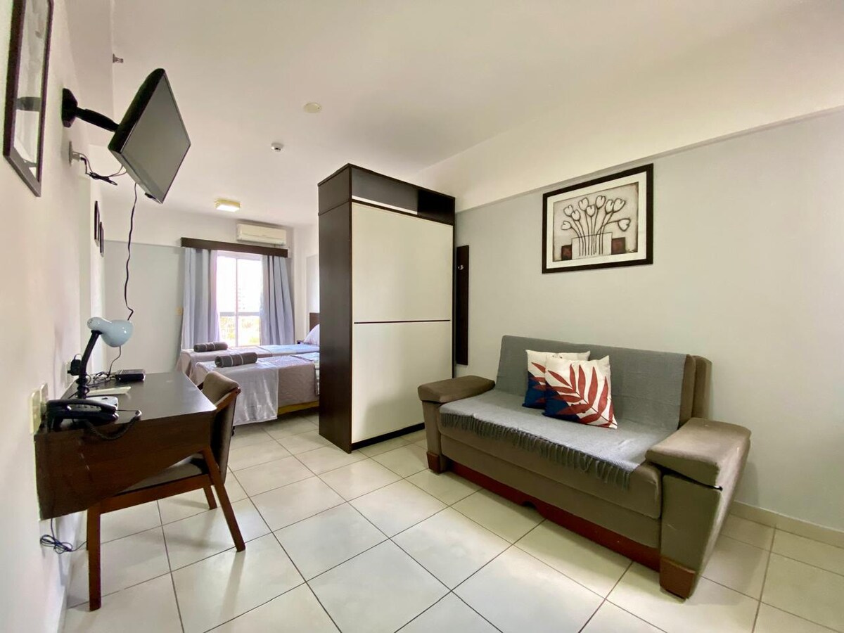 Selamat datang ke Apê Aeroclube! Penginapan moden, praktikal dan penuh pesona, terletak di hadapan aeroclube Bauru, berhampiran dengan Pusat Membeli Belah Bauru dan USP. Sesuai untuk mereka yang mencari keselesaan, pemandangan istimewa dan akses mudah ke bandar. Apê mempunyai 1 ruang letak kereta, Wi-Fi pantas, pendingin hawa, dapur lengkap, katil selesa, TV HD dengan saluran tertutup dan persekitaran yang direka untuk berehat. Sesuai untuk pasangan, pelajar, pengembara perniagaan atau pencinta penerbangan!