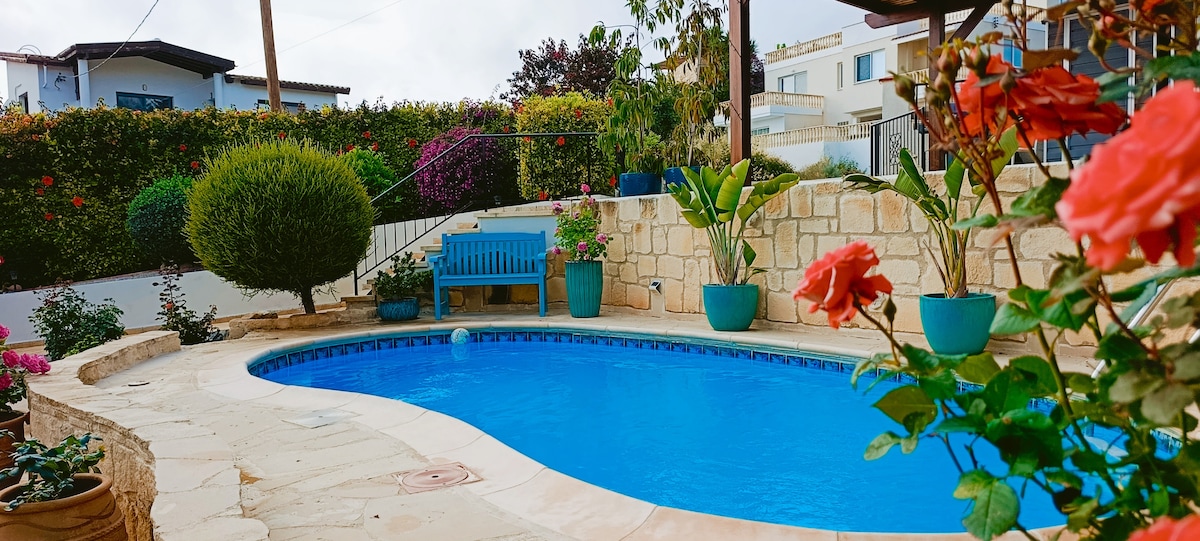 Masuk ke dalam ketenangan! Bercuti ke tempat persembunyian yang diterangi cahaya matahari di lereng bukit yang tenang. Bersantai di tepi kolam renang, berjemur di bawah matahari, dan nikmati pemandangan laut yang menakjubkan dan matahari terbenam keemasan. Hanya 15 minit memandu dari Paphos, dua studio kami yang menawan adalah tempat yang sesuai untuk diterokai. Pantai, denai alam semula jadi, Pelabuhan, Blue Lagoon, dan bandar lama Paphos, semuanya 15–30 minit. memandu. Wi-Fi percuma, tempat letak kereta, dataran kampung dengan kedai arak dan bar vino, hanya 4 minit. memandu. Kereta adalah penting. Kolam renang dibuka sepanjang tahun (tidak dipanaskan).