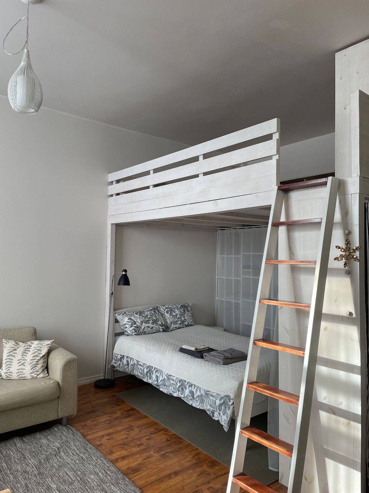 Studio kecil yang selesa berhampiran dengan kawasan Telliskivi yang popular dan bergaya, rantau ini dipanggil Pelgulinn dan ia unik dengan seni bina kayunya. Studio kecil seluas 20 meter persegi mempunyai semua yang diperlukan di dalamnya, katil besar yang selesa dan dapur yang lengkap. Semua yang anda perlukan hanya untuk perjalanan hujung minggu atau untuk penginapan yang lebih panjang. Ini bukan tempat biasa yang dibina untuk Airbnb, ia adalah untuk kegunaan keluarga dan anda boleh berasa seperti orang tempatan di sana. Perhentian bas hanya beberapa minit jauhnya dan Old Town juga dalam jarak berjalan kaki.