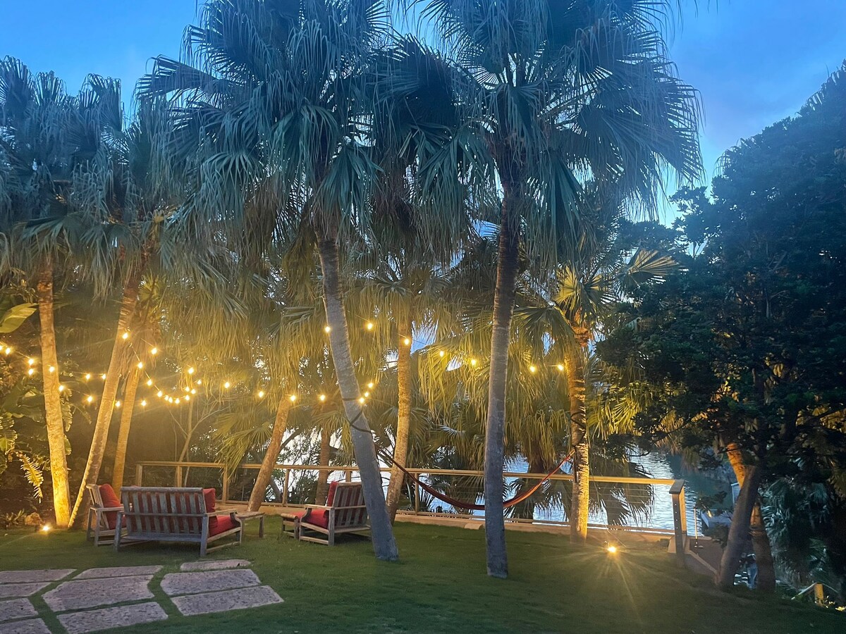 Island Chic 3BR dengan Dok + Suasana Lounge Luar