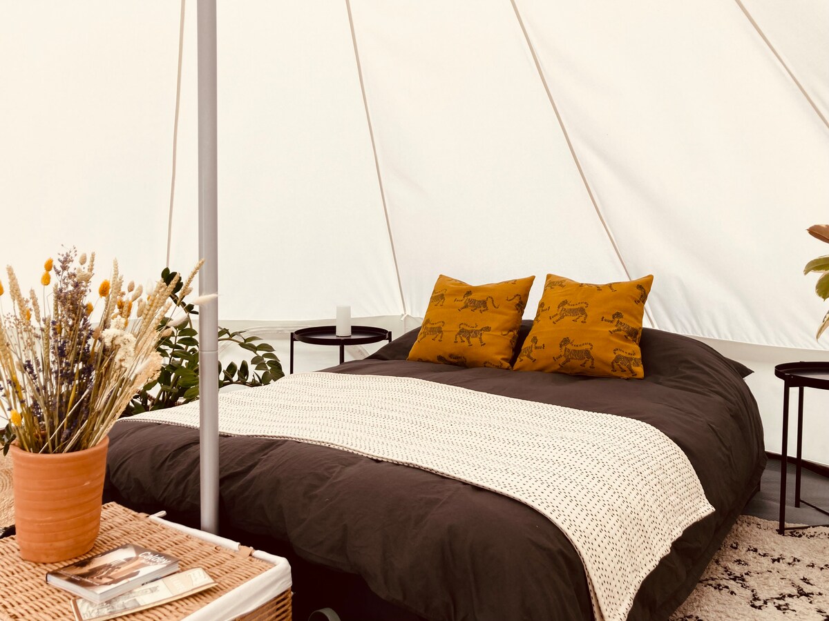 Anda ingin menikmati pengalaman luar yang sederhana, tetapi tidak boleh menghadapi masalah memasang dan mengemas khemah? Apa kata biarkan kami uruskan semua tekanan berkaitan percutian berkhemah anda dan membolehkan anda pergi ke khemah loceng anda sendiri yang telah dipasang dan dilengkapi perabot. Anda hanya perlu membawa peralatan tempat tidur anda sendiri dan meletakkannya di atas katil double yang sudah ada di dalam khemah. Berhampiran terdapat tempat perlindungan bersama dengan meja dan bangku di mana anda boleh menikmati hidangan anda. Di luar setiap khemah loceng terdapat dapur palet dengan dua periuk dan pemanggang.