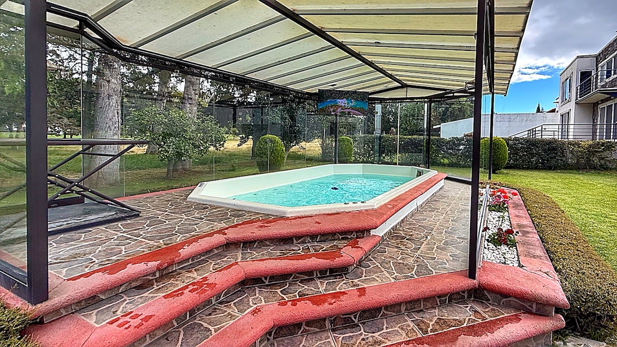 Tempahan anda adalah untuk 1 hingga 16 orang, orang tambahan mempunyai KOS tambahan. Penginapan ini terletak di Pembangunan kediaman dengan rumah terbesar dan tercantik di Tequisquiapan, hanya 20 minit dari pusat bandar dan pengawasan 24/7. - 6 Bilik - 4.5 bilik air - Dapur (Atas) - Kolam renang dengan sel solar -Pergola - WiFi 350MB - Ping Pong -Grill Pada kos tambahan - Jacuzzi - Kolam renang - Makanan -Mascotas - Orang Tambahan - Pembersihan Peribadi/Dapur (ditempah lebih awal)