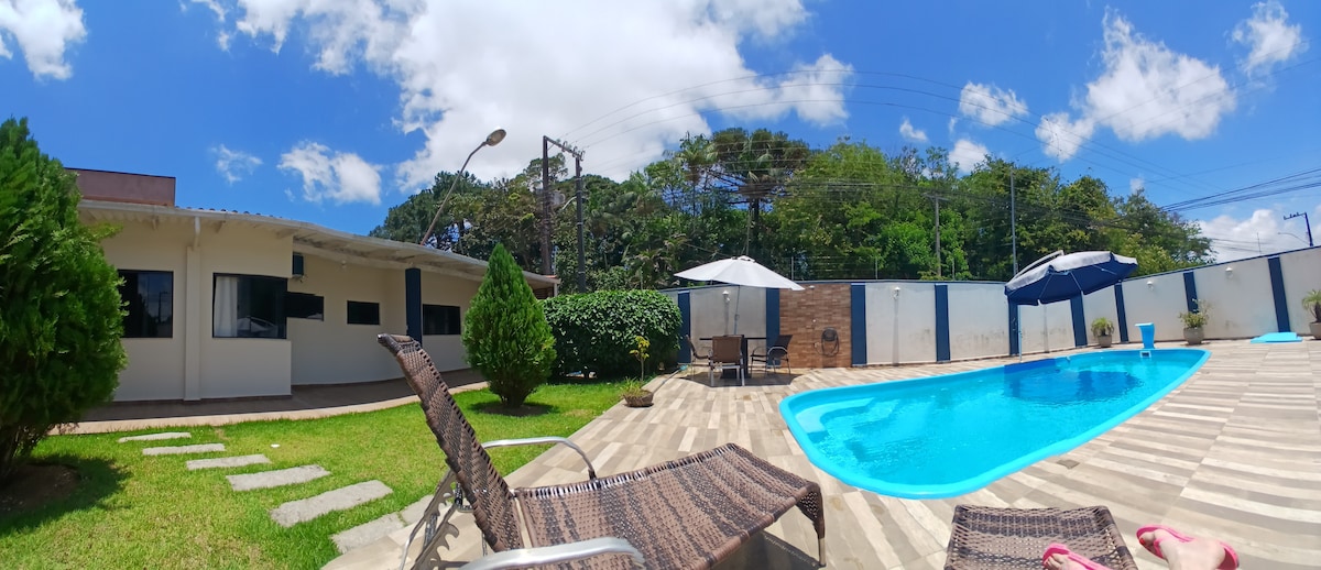 Rumah dengan kolam renang, kawasan gourmet dengan tab mandi, kawasan barbeku, TV pintar, bunyi dan dapur penuh, 3 suite dan 1 bilik tidur. Bilik dengan TV mengikut langganan, Netflix, Disney+, Globoplay, HBO Max dan Wi-Fi 1000gb bersih di seluruh rumah dan internet berwayar di semua bilik tidur dan bilik TV, pancuran mandi dan paip dengan pemanas, patio untuk dua hingga tiga kereta, keselamatan dan keselesaan keutamaan tertinggi kami.