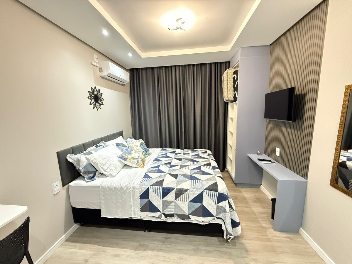 Bangun dengan bunyi laut dan cahaya matahari di ombak 🌊✨ Studio kami yang terletak di atas pasir adalah percutian tepi laut, dibuat untuk mereka yang mencari ketenangan, keselesaan dan hubungan. Setiap perincian difikirkan dengan penuh kasih sayang, supaya anda boleh merasai ketenangan laut di dalam rumah. Terletak di pusat Balneário Piçarras, dikelilingi oleh semua yang anda perlukan dan hanya 6 km dari Beto Carrero World. Di sini masa bergerak lebih perlahan, badan berehat dan jiwa bernafas. Hari rehat, inspirasi dan pesona menghadap laut. 🌸