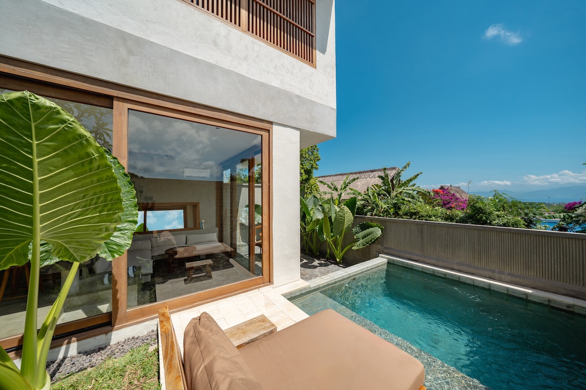 Vila Kupu-kupu - Suite Pemandangan Laut dengan Kolam Persendirian Suite dua tingkat yang menakjubkan ini adalah tempat duduk barisan hadapan anda ke syurga dengan pemandangan panorama lautan dan pulau ajaib Nusa Penida yang menakjubkan. Berehat dan bersantai di kolam renang peribadi anda, sesuai untuk berenang yang menyegarkan pada waktu siang atau berenang yang tenang pada waktu matahari terbenam. Sama ada anda menghirup kopi pagi anda dengan matahari terbit atau menikmati malam romantis di bawah bintang-bintang, suite ini direka untuk ketenangan, privasi dan hubungan dengan alam semula jadi.
