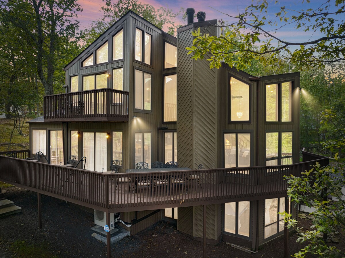 Selamat datang ke resort Poconos peribadi anda! Rumah 5 bilik tidur yang besar ini telah dinaik taraf sepenuhnya untuk mencipta pengalaman percutian moden, yang sarat dengan kemudahan! DUA bilik permainan, meja kolam renang, ping pong, hoki udara, permainan arked, lubang api, tab mandi air panas, boling, golf frisbee, dan banyak lagi - semuanya milik anda! 15 minit - Delaware Water Gap, Downtown Stroudsburg 20 min - Kalahari Resort, Shawnee Mountain, Big Pocono State Park 30 minit - Bushkill Falls Alami Poconos Bersama Kami & Ketahui Lebih Lanjut Di Bawah!