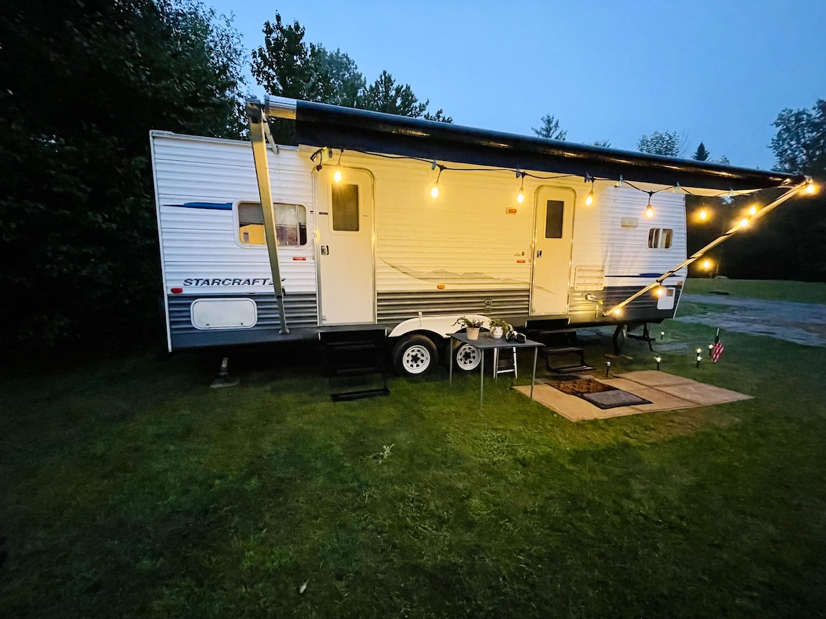 RV yang damai dan luas diletakkan dalam suasana hutan di Tracy Pond. Anda mempunyai semua keselesaan rumah serta suasana yang indah dalam treler 30 kaki ini. Dapur penuh, tempat duduk teater yang selesa dengan sambungan WiFi yang hebat. Anda boleh memancing di tasik, atau menggunakan kayak untuk melihat burung helang melambung dan memerang bermain. Anda ada lubang api dan meja berkelah besar untuk menikmati aktiviti luar. Hanya 15 minit ke pusat bandar Bangor dan lapangan terbang. Satu jam ke Taman Negara Acadia.