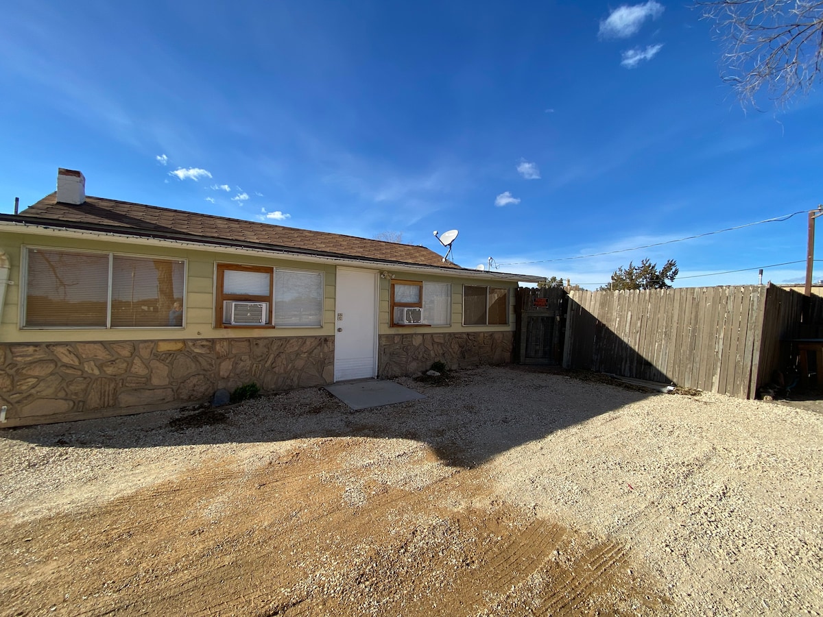 Kejiranan tenang yang terletak di Pueblo West. Duduk betul-betul berhampiran dengan rumah kami. Ini adalah rumah kecil yang sangat kecil tetapi baru diubahsuai! 12' x 16' satu bilik, katil queen, pancuran mandi saiz bagus dan tandas dengan pintu bangsal untuk privasi di bilik mandi. Bar duduk dengan dua bangku, TV pintar dengan pendiangan elektrik di sudut memberikan sentuhan romantik! Loveseat dengan ottoman. Loteng kecil yang kanak-kanak boleh tidur untuk penginapan jangka pendek. Periuk kopi kecil, di bawah peti sejuk kaunter, dan cermin saiz cantik di atas sinki ladang.