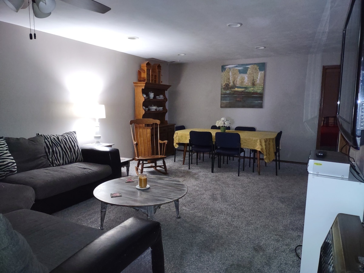 Nikmati penginapan di Banglo 3 bilik tidur kami yang telah diubahsuai sepenuhnya dan terletak hanya 2 batu dari Hospital Kaedah OSF atau Unity Point & 5 batu dari Lapangan Terbang Greater Peoria. Anda akan dikelilingi oleh restoran atau hiburan tetapi masih terletak di kejiranan yang tenang dan selesa. Penginapan ini mempunyai begitu banyak untuk ditawarkan termasuk kawasan senaman dengan berat & elips komersial. Sama ada anda mengembara bersendirian atau dengan tetamu, pelan lantai terbuka akan membuat semua orang selesa:)