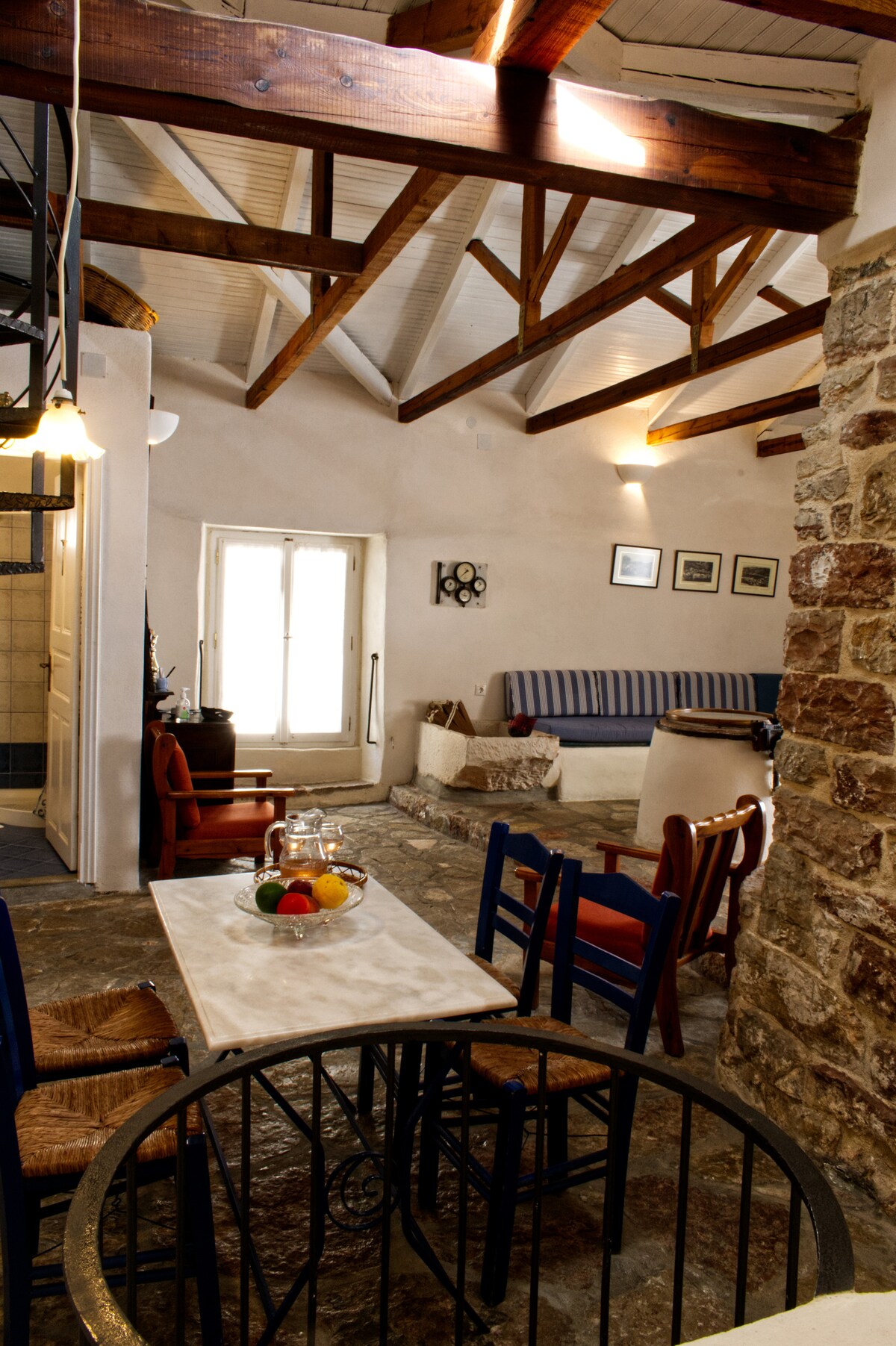 Ini adalah studio batu hanya beberapa minit berjalan kaki dari pantai. Walaupun ia terletak dalam jarak yang singkat dari pelabuhan Kioni, salah satu pelabuhan Ionia yang paling popular dan indah, tidak jauh dari sisi lain, anda akan mendapati diri anda berada di kawasan luar bandar, di mana petani menyimpan haiwan mereka dan menuai tanah dengan pokok zaitun. Ia adalah satu kontroversi, tetapi di sinilah dua gaya hidup yang bercanggah bertemu. Sambutan mesra menanti anda, dengan produk berkualiti tinggi, hadiah tanah Ithacan.