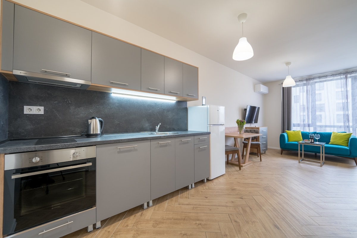 Apartmen baru 2022, terletak 5 minit berjalan kaki, dari Universiti Bulgaria Baru. Ia mempunyai semua yang anda perlukan untuk penginapan jangka pendek atau jangka panjang anda - katil saiz raja, kawasan makan, bilik mandi moden dengan tandas, dapur lengkap, almari pakaian dengan penyangkut baju, WI-FI, TV, dll. Ia sesuai untuk percutian romantik, pengembaraan perniagaan, pengembara solo, pelajar dan semua orang yang menikmati reka bentuk moden yang digabungkan dengan keselesaan dan suasana senyap.