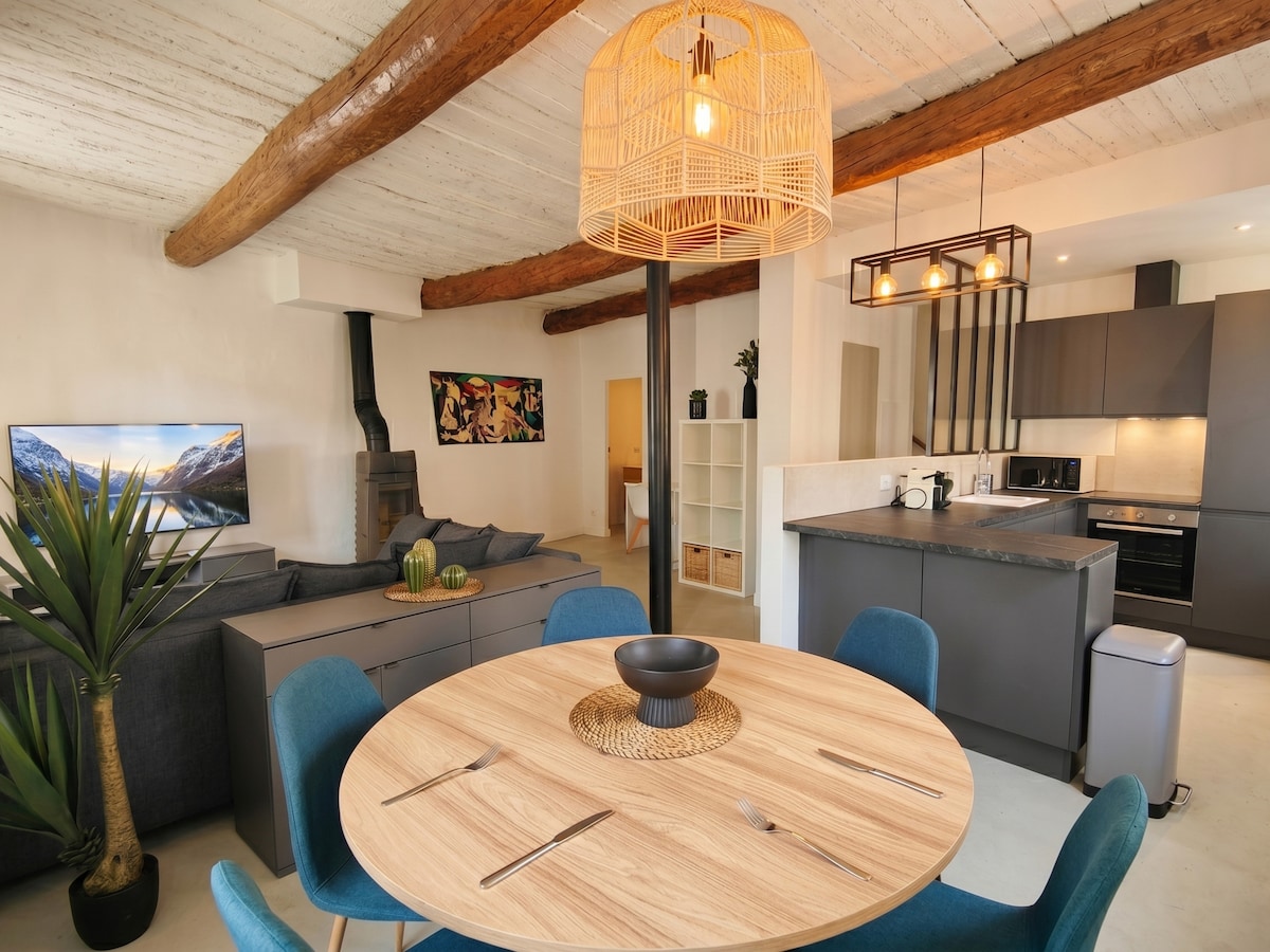 "La Maison aux Oliviers" adalah rumah ladang kecil yang menawan seluas 90 m2, berhawa dingin, bebas dan terletak di dusun zaitun lama, tenang di taman landskap yang menawarkan kolam renang peribadi yang dipanaskan dan selamat. Awningnya yang luas menawarkan peluang untuk hidup di luar yang terlindung daripada matahari dan angin (mistral). Berhampiran dengan pusat bersejarah, pasar tempatan dan kedai-kedai (berjalan kaki), ia dilengkapi dengan sempurna untuk bekerja dari jauh (gentian berkelajuan tinggi)