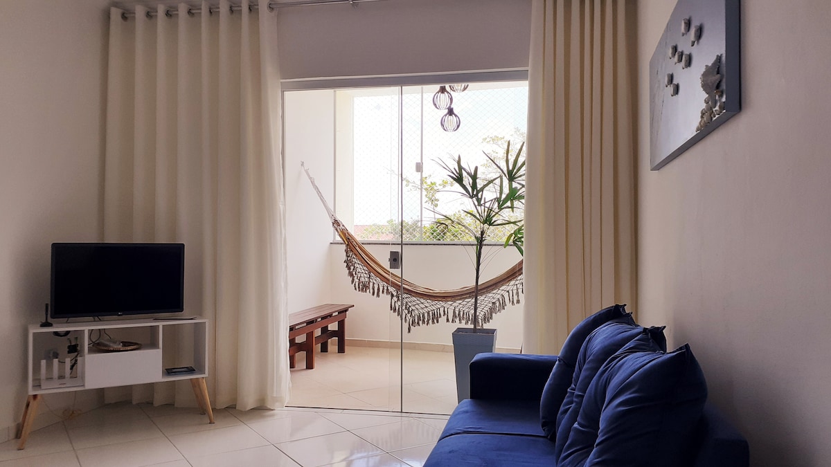 Apê dengan garaj, tepi laut, satu bilik tidur, ruang tamu, dapur, bilik mandi, TV kabel, katil double, dua basikal, pancuran mandi bersih, peti sejuk, dapur, ketuhar gelombang mikro, kipas siling. Pintu 24 jam, lif, wifi hanya di tingkat bawah, pusat bandar Peruíbe, berhampiran pasar, membeli-belah. Memuatkan sehingga 6 orang dengan garaj untuk 1 kereta. Daftar masuk Ahad selepas 6 petang Daftar keluar keenam 8h. Daftar masuk kedua pada 12 tengah hari.