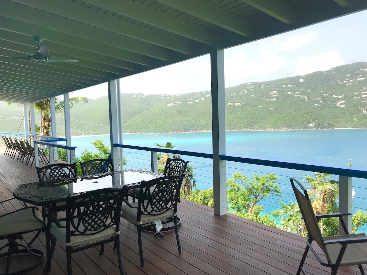 *TIADA YURAN PEMBERSIHAN * Terletak di bahagian Utara St. Thomas yang sejuk, rumah kami menghadap halaman besar yang rata & pemandangan panorama Magen 's Bay, Lautan Atlantik, dan 20 pulau kecil. Unit anda mempunyai pintu masuk persendirian 5 langkah ke bawah dari ruang letak kereta khusus anda. Perhatian: 1. Dilarang merokok di atas dek atau di dalam apartmen. 2. Tidak seperti kebanyakan Airbnb, kami TIDAK mengenakan yuran pembersihan, jadi kami meminta tetamu kami menyapu dan mencuci pinggan mangkuk mereka sebelum keluar. 3. Tidak lebih daripada 4 tetamu pada BILA-BILA masa.