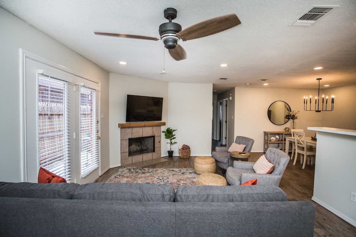Datang menginap di rumah Lubbock kami yang baru dibina dan cantik. Akses mudah ke Texas Tech, restoran yang hebat, dan daerah perubatan. Semuanya segar dan baru! Nikmati dapur terbuka dengan peralatan keluli tahan karat. Tidur dengan selesa di Master King Suite atau bilik tidur Queen dengan bilik mandi bersebelahan dan bersantai menonton TV Pintar 55"kami. Nikmati berkumpul bersama di ruang tamu konsep terbuka kami untuk memasak, makan, dan berehat. Kawasan yang selesa ini mempunyai TV Pintar 65"dan boleh memuatkan tiga orang lagi.