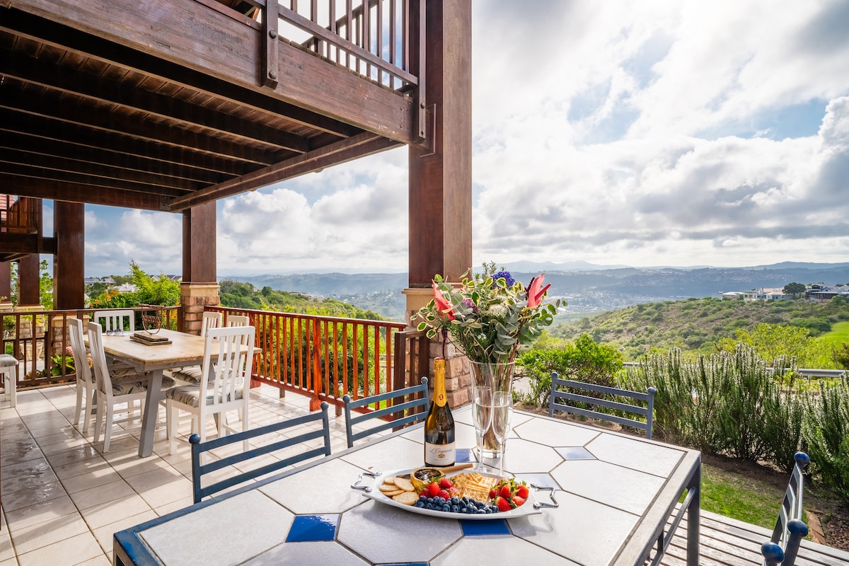 Pemandangan 180 darjah (Solar untuk keselamatan kuasa) lagun Knysna yang menakjubkan di kejiranan yang tenang. Kemasan terbaik di rumah baru! Taman dan kolam renang yang indah. Dek cerah untuk menikmati pemandangan dan Pendiang Api untuk menambah suasana dan kehangatan pada waktu malam yang lebih sejuk. Begitu dekat dengan bandar tetapi tenang dan peribadi. Braai/Barbeku untuk memasak dan makan di luar pada banyak malam yang indah. Ulasan daripada semua tetamu kami mengatakan semuanya dan 75% tetamu kami adalah pengembara antarabangsa yang arif.