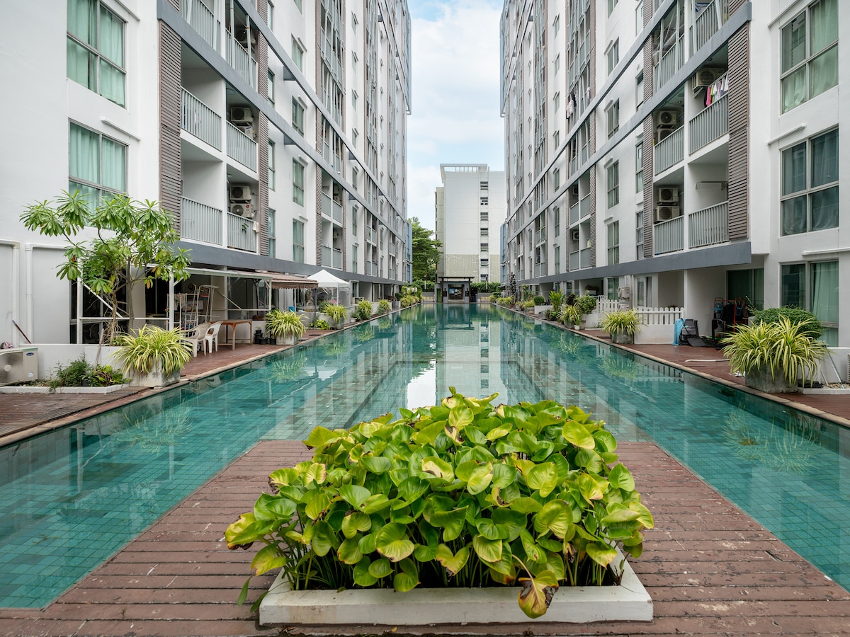 WIFI Pantas Percuma/1BR/Ratchada/CBD/Balkoni