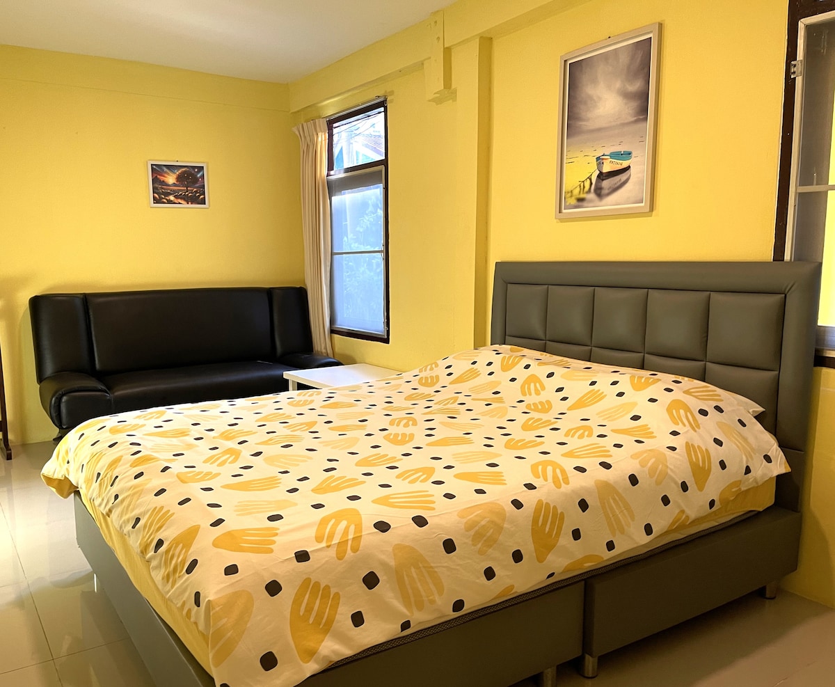 "Youโll be staying in 1 of our 4 cozy Queen Room with Sofa Bed & En-Suite Bathroom. ๐๏ธ Individual rooms may differ slightly in layout and appearance. This inviting 16mยฒ space includes a 5ft bed, sofa bed, A/C, flat-screen TV, fridge, safe, wardrobe, kettle, and a hot shower. ๐ฟ Uncover Hua Hin's hidden gems: vibrant nightlife, massage parlors, top-notch eateries, sightseeing spots, bustling markets, and friendly locals. ๐ Stay at the Golf-Sea-City Guest House, in the heart of it all. ๐จ