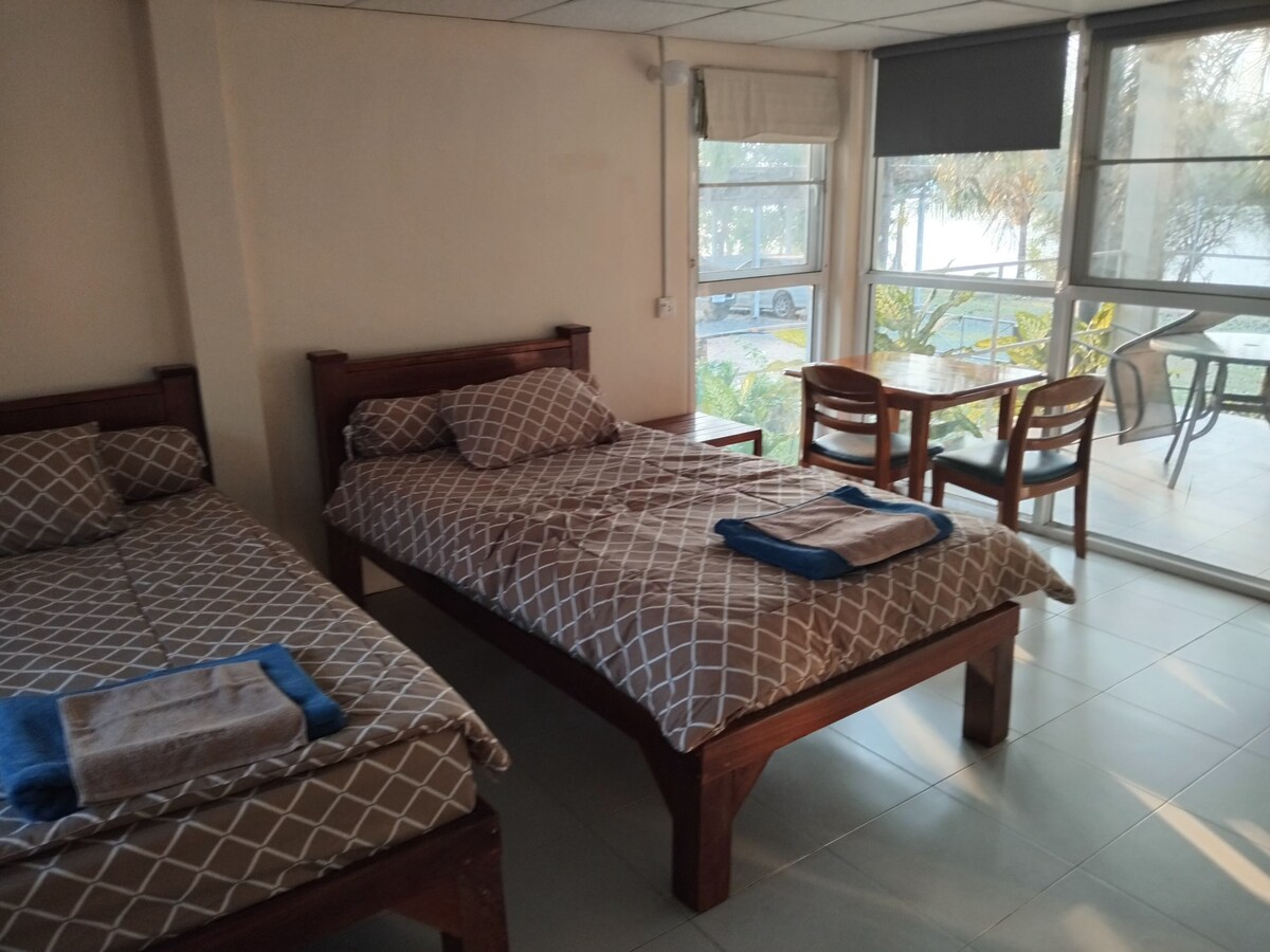 Pimbunya House - Rimnum Deluxe Room5 Jenis Rumah Bupa, Bilik Deluxe Waterfront 5 Rumah gaya Inggeris yang selesa, 1 bilik tidur, 1 bilik mandi, boleh menginap untuk 2 orang. Terdapat teres tepi air di mana anda boleh duduk dan berehat, dikelilingi oleh alam semula jadi yang teduh dan tenang, di bandar Pibul, makan akses mudah ke pelbagai tarikan di wilayah Ubatthani. Termasuk yuran air, yuran elektrik, air minuman, snek di dalam penginapan. Termasuk kupon untuk makanan, minuman dan makanan ringan di Buna, Bakery House & Cafe, 200 baht seorang.