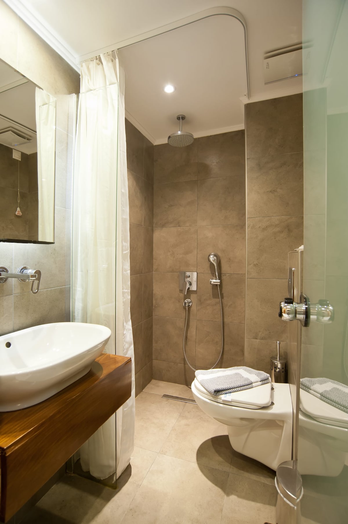 The Standard Twin Room includes two single beds, perfect for friends or couples looking for a comfortable and simple accommodation. The room is equipped with essential modern amenities such as air conditioning, a flat-screen TV, a small desk, and a private full bathroom, ensuring a restful and convenient experience.
