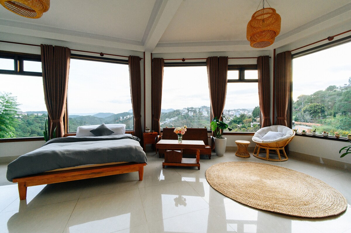 Studio yang selesa di Dalat, terletak di atas bukit kecil dengan pemandangan bahagian bandar yang tenang. Bilik ini termasuk bilik mandi bersambung dengan pancuran mandi tenggelam yang berfungsi sebagai tab mandi sejuk pada hari yang panas. Direka dengan susun atur terbuka untuk mendekatkan alam semula jadi dengan penginapan anda. Sebab kami: Lokasi hebat: 10 minit berjalan kaki ke pusat bandar, gerai makanan berhampiran. Taman yang subur. Sarapan buatan sendiri percuma, disesuaikan dengan diet anda. Kopi dan teh percuma pada bila-bila masa. Tempat letak kereta yang selamat dan luas. Keluarga hos yang mesra: membuat anda berasa selesa seperti di rumah.