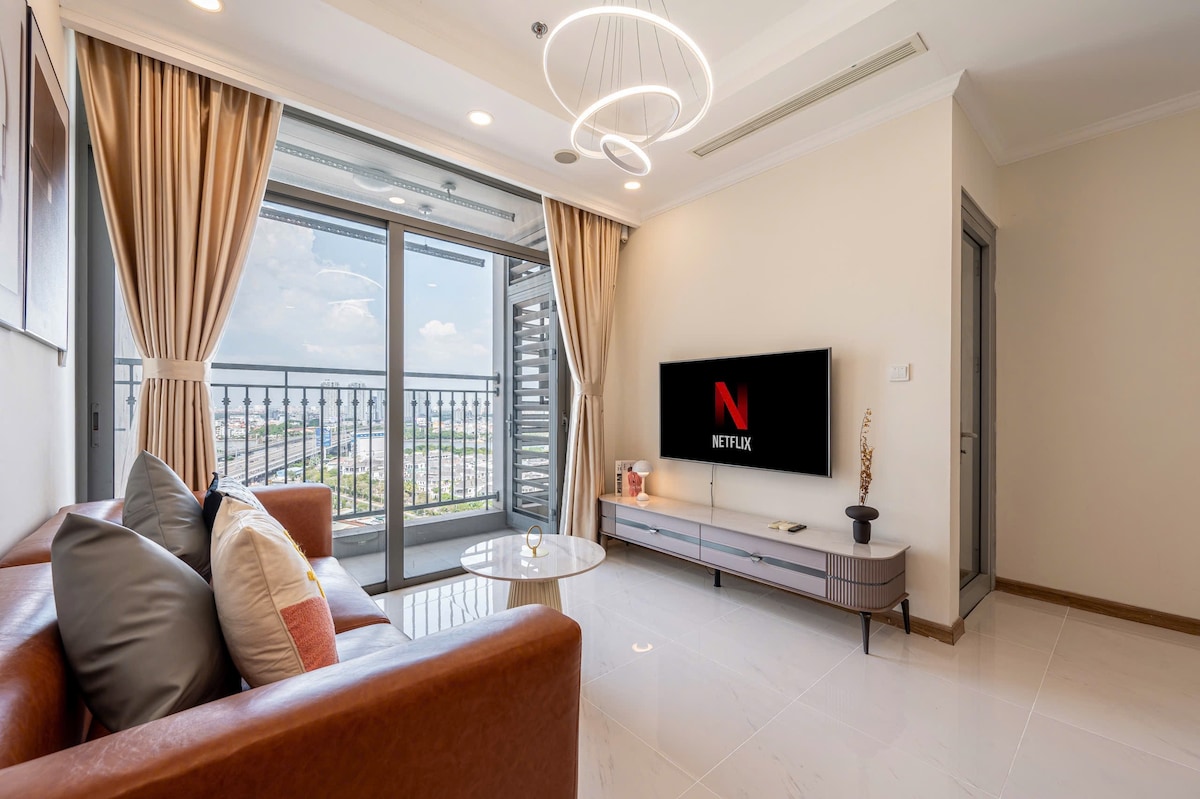 The 2 Br terletak di Landmark 6 Vinhome Central Park - tempat yang ideal untuk tinggal dengan ruang tamu moden dan mewah. Kod apt: L6-15.06 yang bertentangan dengan Mercu Tanda 81. Anda akan memiliki pemandangan matahari terbit yang terbaik dari ruang tamu. Kondominium ini berada di tingkat 15 yang begitu damai dan memiliki pemandangan matahari terbit yang indah, yang merupakan peringatan bahawa apabila matahari terbenam dan terbit setiap hari, ia memberi kita keyakinan bahawa perkara yang baik akan berlaku dalam kehidupan kita. Terpulang kepada kami untuk memberi tumpuan kepada aspek positif kehidupan. ❤️