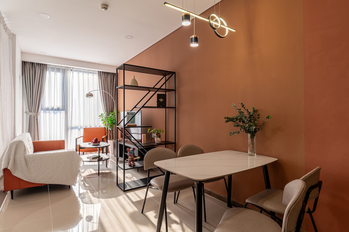 Selamat datang ke Oasis Bandar Anda! Bersantai di apartmen 1 bilik tidur kami untuk 2 orang dengan balkoni pemandangan luas di Japan Town, hanya 5 minit dari pusat HCM. Restoran, bar, kafe, tempat urut, dan kedai serbaneka semuanya dalam jarak 1-200m berjalan kaki. Di tingkat 3, syurga Japandi anda mempunyai kemudahan penuh. Tiada lif, tetapi tangga yang lebar dan lembut adalah senaman percuma! 💪 Nikmati projektor 100 inci untuk malam filem, sofa 1.8m yang selesa, dapur yang serba lengkap, dan bilik mandi yang menyegarkan.