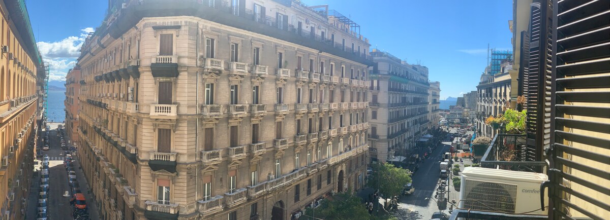 Terletak di tengah-tengah Naples, di tingkat atas bangunan bersejarah dengan pemandangan yang indah. luas, berhawa dingin, 2 bilik tidur, kedua-dua bilik mandi dengan pancuran mandi, dapur yang sangat luas dan lengkap, balkoni besar, dan teres bumbung yang indah di mana anda boleh menikmati pemandangan Vesuvius dan istana. Flat ini dalam jarak berjalan kaki dari monumen yang paling penting! Metro & kereta kabel hanya 5 minit berjalan kaki (sila ambil perhatian bahawa ia mengambil kira-kira 20 anak tangga untuk sampai ke lif).