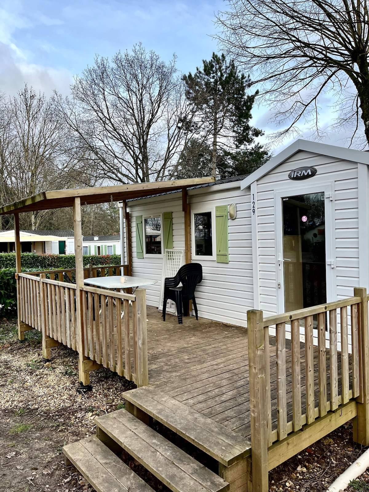 Banglo teres kecil (dua unit bebas 100% di bawah bumbung yang sama) terletak di dalam tapak perkhemahan keluarga kami yang menyenangkan, yang terletak di kawasan desa Picardy. Dilengkapi dengan dapur kecil, ruang tamu, bilik mandi cantik dan bilik tidur dengan dua katil single, ia sesuai untuk menampung dua orang