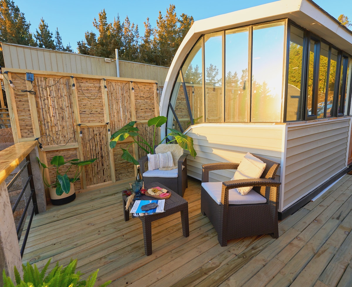 Kabin 2 orang kami terletak di bukit-bukit yang menghadap lautan Pasifik, hanya 10 minit berjalan kaki dari bandar, tetapi anda boleh berada di dunia yang berbeza, dikelilingi oleh hutan dan alam semula jadi. Sangat selamat, sangat tenang. Sesuai untuk satu orang atau pasangan yang mencari penginapan jangka panjang.
