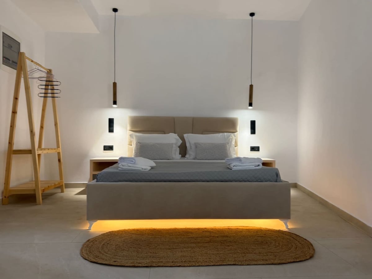 Apartmen yang dibina baru-baru ini yang menggabungkan pemandangan panorama laut dan matahari terbenamnya yang menakjubkan, dengan suasana yang selesa. Menjelajahi apartmen anda akan menemui ruang tamu yang luas dengan sofa besar yang boleh diubah menjadi katil bersaiz queen (untuk 2 orang). Anda juga akan menemui dapur yang lengkap. Bilik tidur yang luas termasuk katil bersaiz king dan almari. Tambahan pula terdapat bilik mandi moden.* dapur dan bilik tidur mempunyai akses kepada balkoni berasingan dan mengandungi set TV dan AC.