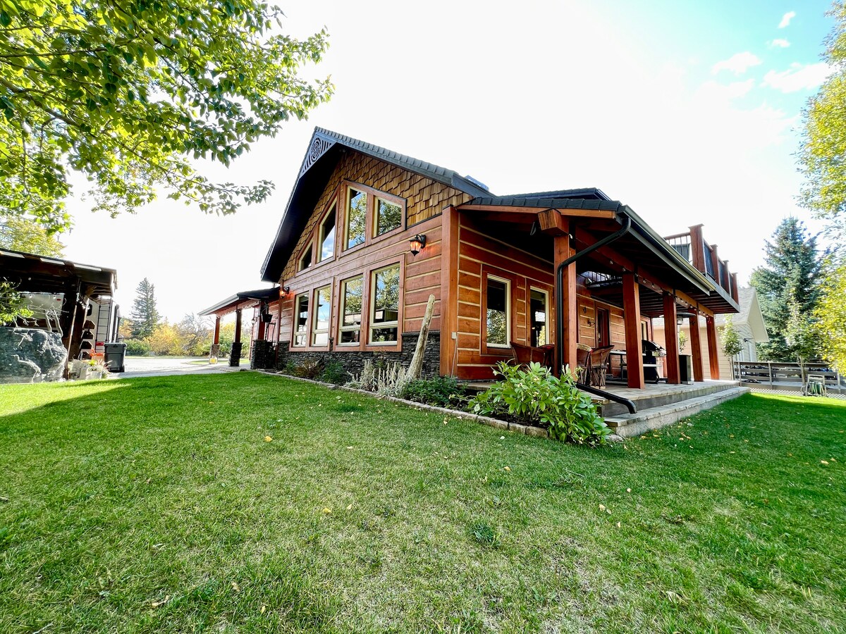 Selamat datang ke Percutian Kayu Moden anda beberapa minit di luar Castle Mountain. 12+ keluarga atau rakan-rakan boleh menikmati rumah mewah 6 katil / 6 bilik mandi seluas 4500 kaki persegi ini. Tab mandi air panas luar, sauna tong cedar, taman permainan, dan meja bomba. Bilik teater filem! Kebanyakan bilik tidur mempunyai bilik mandi ensuite dan katil king. Meja kayu 12 orang dan dapur chef untuk makanan berkumpulan dan kenangan. 100+ ulasan 5 bintang dan senarai menunggu yang panjang. 45 minit ke Waterton. Pemandangan indah dari setiap tingkap dengan suasana gunung yang selesa dan ruang terbuka