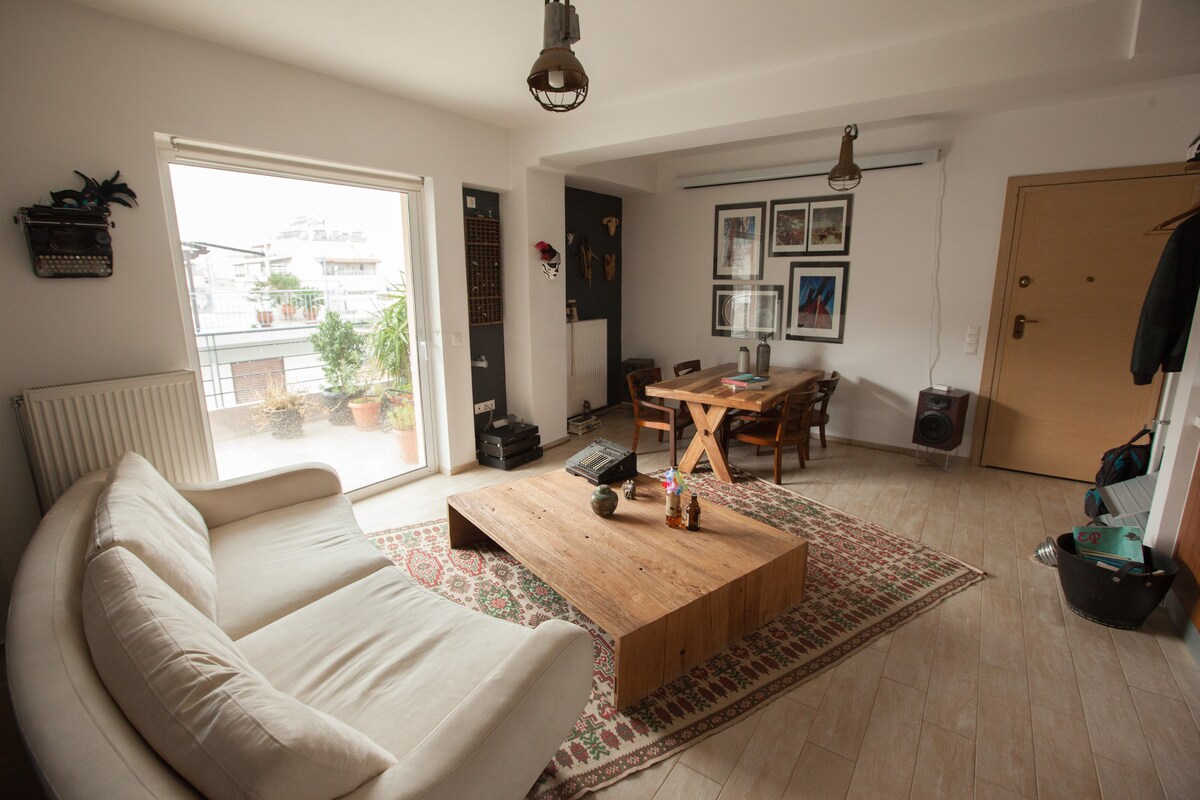 A unique, interior designed, luxury apartment at the heart of Piraeus center. 2 bedrooms, 2 full bathrooms (1 ensuite), jacuzzi, fully equipped kitchen, washing machine, dishwasher, fast internet. 2 minit berjalan kaki dari metro (laluan lapangan terbang) 7 minit dari pelabuhan penumpang untuk semua pulau Yunani, dan semua membeli-belah dan rekreasi hanya beberapa langkah jauhnya.