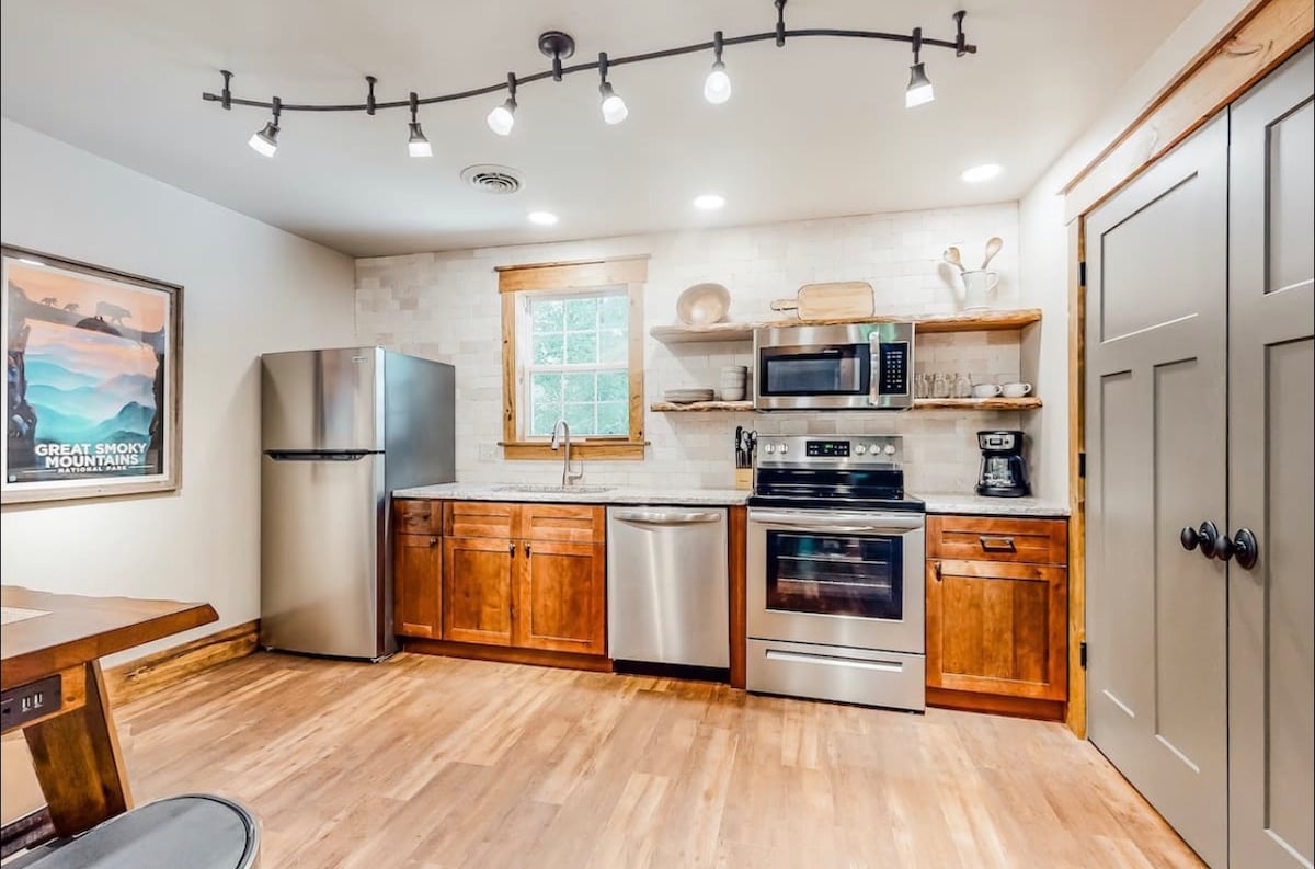 ✅ Terletak di tengah-tengah (8 batu ke Dollywood atau 8 batu ke Gatlinburg) Tab Mandi✅ Air Panas ✅Pemandangan gunung Lubang ✅api Pendiang Api✅ Elektrik Di Dalam TV ✅Pintar Bilik ✅basah (tab mandi dan pancuran mandi) Pemanggang ✅Arang ✅Frisbee Golf Serambi ✅tertutup dengan kerusi goyang Kabin Studio Modern-Compact✅ Baharu (550 kaki persegi) Katil ✅King dengan cadar mewah ✅Mesin basuh/pengering, mesin basuh pinggan mangkuk, ketuhar dan peti sejuk! Permainan papan✅ vintaj Pemain ✅Rekod