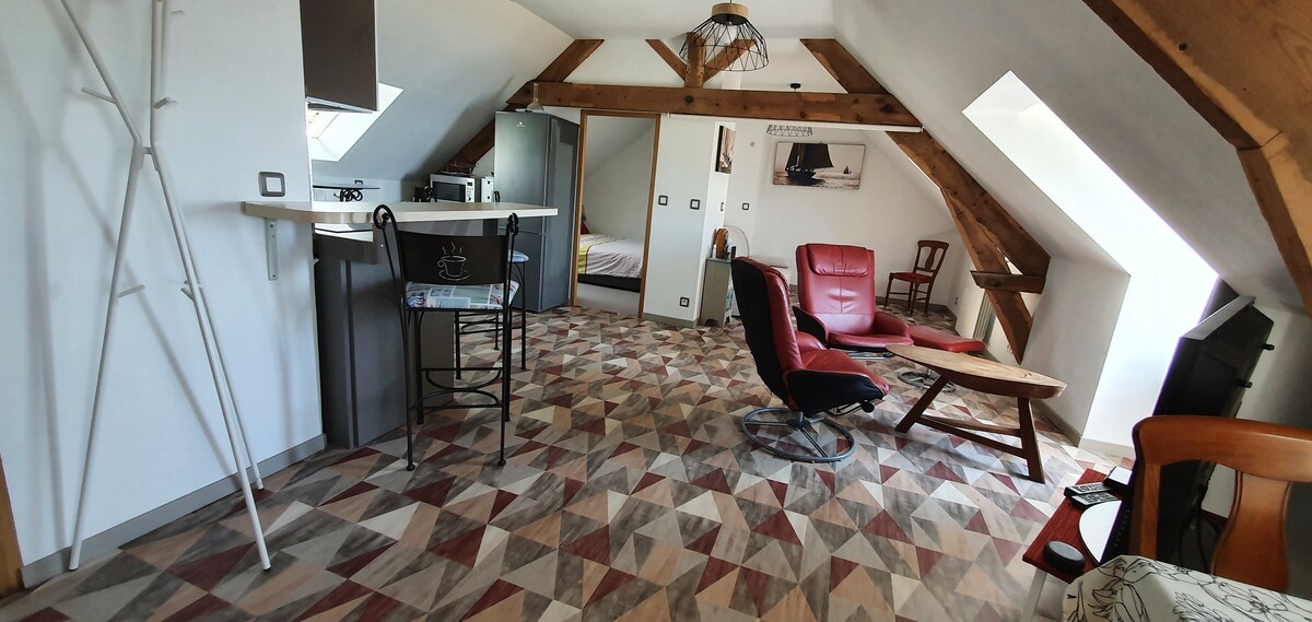 Kira-kira 35 m², apartmen ini terdiri daripada ruang tamu yang menghadap laut dengan dapur kecil (+ mezzanine dengan 2 katil 0.90 m), bilik tidur (2 katil 0.90) dan bilik mandi (pancuran mandi). Apartmen ini mempunyai TV dan diatur sepenuhnya untuk keselesaan anda (dapur kecil yang lengkap, pinggan mangkuk, peti sejuk, ketuhar kecil, pembuat kopi, pembakar roti...). Linen rumah tidak disediakan . Ruang letak kereta tersedia di luar, serta garaj basikal dan mesin basuh.