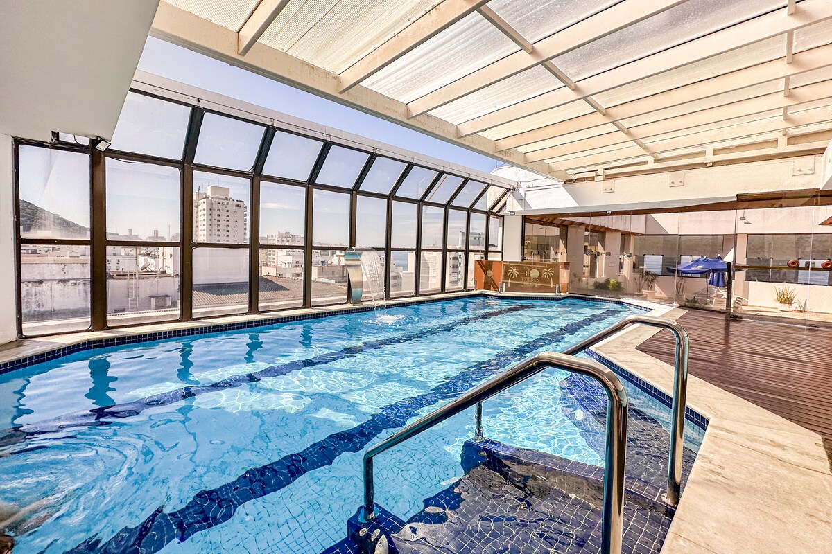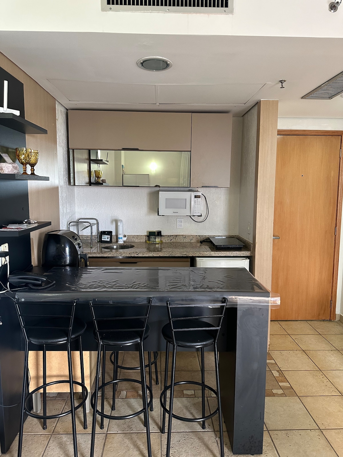 Apartamento mobiliado, apenas 230 metros da praia, menos de 3 minutos a pé. Roupa de cama, toalhas, ar condicionado, TV a cabo, wi-fi, cofre digital, secador de cabelo. Acomoda confortavelmente 4 pessoas, com uma cama de casal no quarto e um sofá cama na sala. Para maior conforto, o Flat conta com recepção 24 horas facilitando o check-in ou check-out, excelente café da manhã (pago a parte), piscina, academia e limpeza diária, exceto domingos e feriados.