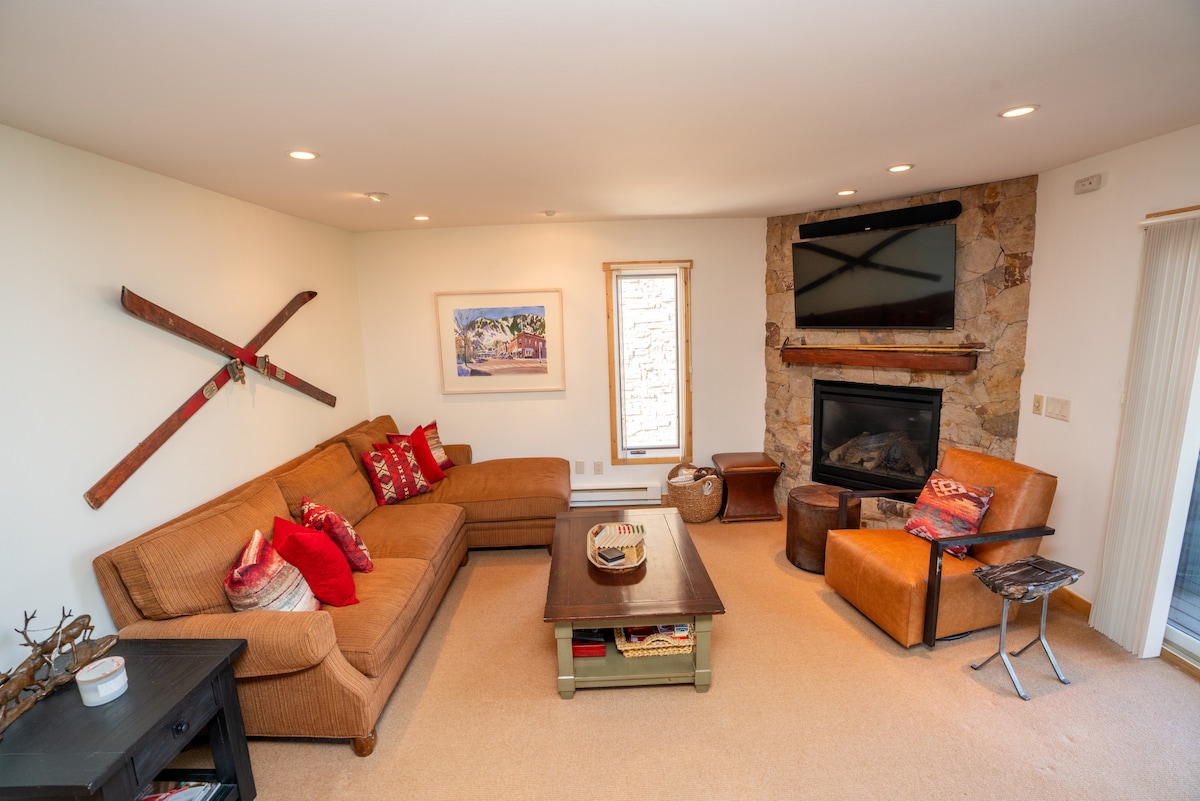 Kondominium yang diubah suai sepenuhnya untuk menempatkan 2 keluarga! Berjalan kaki dengan mudah ke lif Assay Hill merentasi jambatan kayu dan ke atas gunung. Direka untuk keselesaan sepenuhnya daripada lantai yang dipanaskan di dapur, pintu masuk dan bilik mandi hingga peralatan gourmet, meja makan artisan untuk 6 orang - dengan 4 lagi di kaunter! Bersantai di sofa modular yang sangat lembut di hadapan pendiangan gas dan kawasan lounge luaran di dek selama 300 hari matahari!