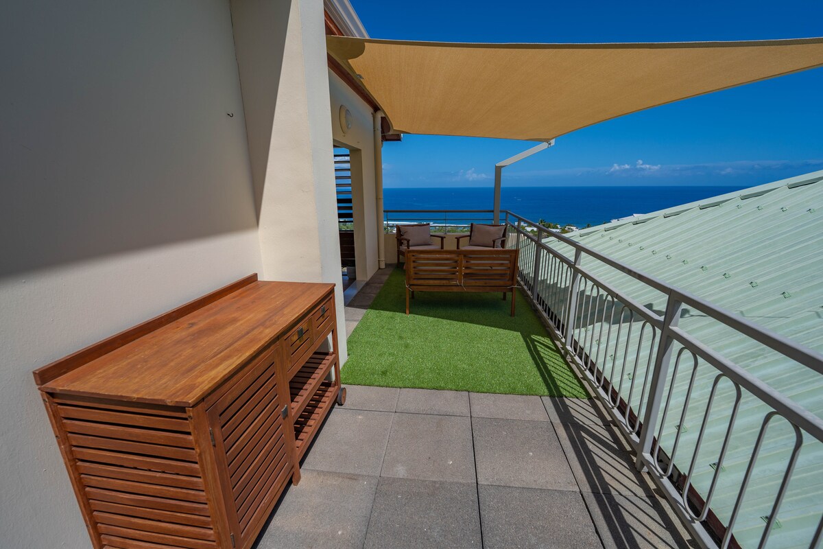 Apartmen mewah yang menawarkan perkhidmatan yang luar biasa, dengan pemandangan Lautan Hindi yang menakjubkan, pancuran mandian berjalan kaki, kolam renang infiniti, penyaman udara, tempat letak kereta persendirian, teres 10m2, TV 110cm dengan gentian internet berkelajuan tinggi. Ti'Mat adalah kepompong sebenar! Sarapan pagi, aperitif, atau makan malam di hadapan perarakan ikan paus atau matahari terbenam yang indah yang akan berada di hadapan anda. Penginapan yang tidak dapat dilupakan, hanya...