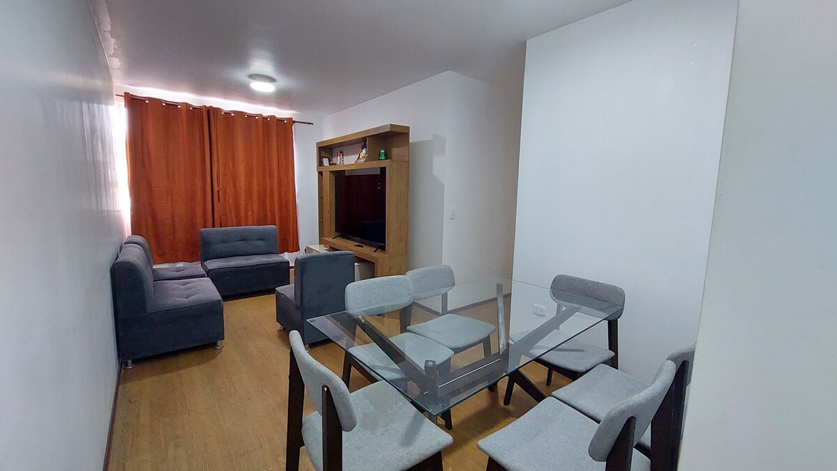 Selamat datang ke kediaman anda di Piura ! Apartmen perdana sesuai untuk hari-hari penginapan anda. Kami memberikan anda suasana yang hangat dan selesa dari saat pertama. Tempat ini tenang dan selamat , ia terletak berhampiran UCV , pasar Super Tottus dan pusat Rumah Maestro ace dan 8 minit dari Real Plaza. Mempunyai : - 02 bilik tidur dengan katil 1.5-plaza dan satu bilik tidur dengan katil 2 plaza - Dapur moden - Bilik Dilengkapi dengan TV 75 " -01 bilik mandi dengan air panas -3 kipas