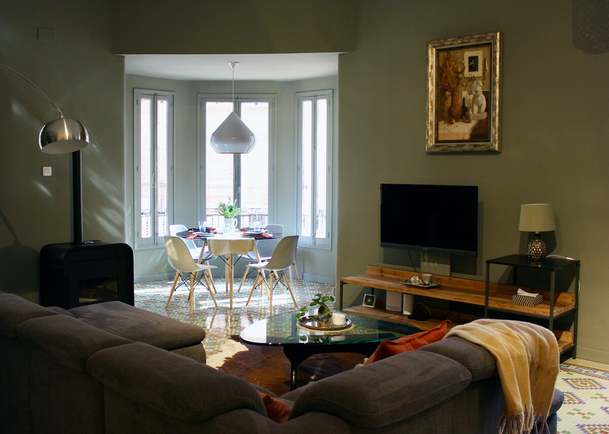 Nikmati pengalaman mewah di penginapan yang terletak di pusat bandar ini dengan gaya boho industri. 3m dari Central Market dan dengan ketenangan yang diperlukan untuk menikmati bandar. 2 minit dari Bullring. Dihiasi dengan citarasa yang baik untuk memberikan anda rehat yang anda layak. Berhampiran dengan bandar lama dan Istana San Fernando. 10 minit dari istana Santa Bárbara dan 15 minit dari pantai Mercado dicirikan oleh udara bohemia, penuh dengan bar dan penduduk tempatan. TINGKAT SATU DENGAN TANGGA VT-500168-A