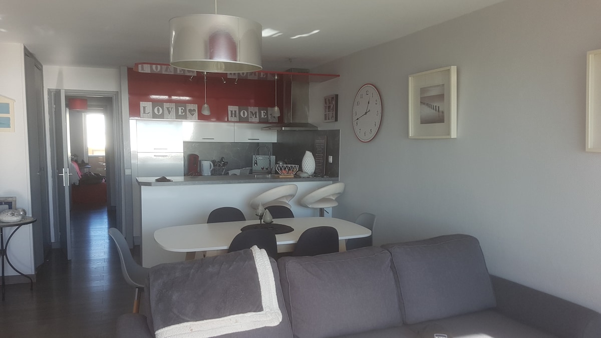 Dupleks cerah, dengan ruang letak kereta yang ditempah, terletak 1 minit dari pantai (100 m), 2 langkah dari pangkalan nautika dan aktivitinya. Di sini anda dipasang dengan senyap, di tingkat 3 dan terakhir (tanpa lif) bangunan yang selamat dengan pemandangan bukit pasir yang indah. Semua keselesaan dipastikan terima kasih kepada peralatan tempat tidur berkualiti (1 katil 160 × 200 dalam bilik dan 1 katil 90 × 200 pada mezzanine), dapur lengkap, tv dan wifi. Katil anda akan disediakan semasa ketibaan + tuala. Jumpa anda tidak lama lagi.