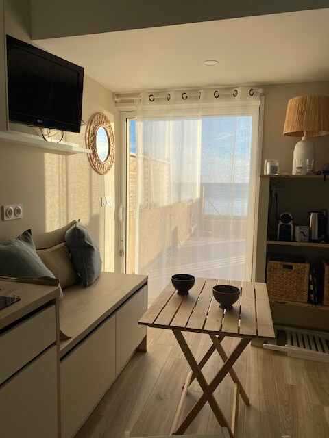 Terokai percutian aman kami di tepi laut! Selamat datang ke kabin menawan kami yang terletak di pantai Almanarre di Hyères. Direka untuk menampung sehingga 6 orang, kami telah mencipta dengan hati, ruang yang menggabungkan keselesaan dan keaslian, menawarkan pengalaman yang menyenangkan dalam jarak berjalan kaki dari air. Anda akan terjaga oleh ombak yang lembut, bersedia untuk menikmati hari yang cerah:) Nilai tambah: akses terus kepada air di bahagian bawah kabin, yang juga membolehkan pemergian wingfoil!