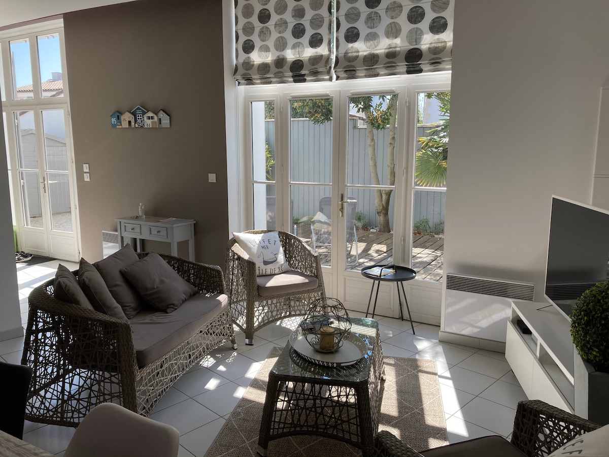 Bilik dua bilik yang selesa dengan teres. Penginapan baru, cerah, tenang, berfungsi. Terletak di antara Bois Plage dan Saint Martin. Akses terus ke laluan basikal, 1 km dari Bourg dan salah satu pasar terbesar di pulau ini dan 2 km dari pantai terbesar di selatan. Percutian yang sempurna untuk pasangan. Kelas perabot pelancong dua bintang.