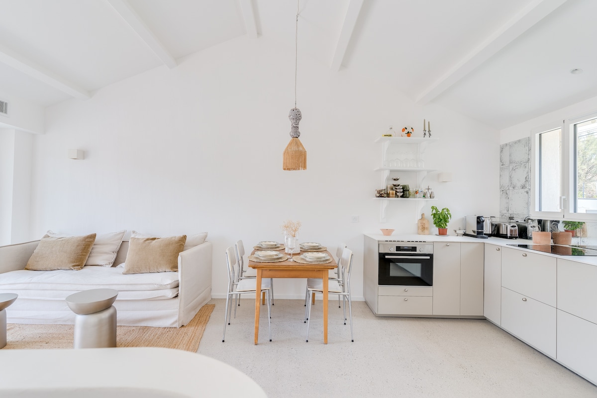 Selamat datang ke sarang ini yang diubah suai sepenuhnya oleh pemiliknya, 100 meter dari laut dan berhampiran dengan Calanques de Marseille yang terkenal! Sesuai untuk percutian bersama keluarga, rakan atau penginapan kerja jarak jauh, penginapan ini mengalu-alukan anda dalam persekitaran yang tenang, hanya beberapa langkah dari pantai Le Prado dan Pointe Rouge. Anda akan menikmati taman persendirian yang luas, semua kemudahan moden serta dua ruang tidur yang berbeza.