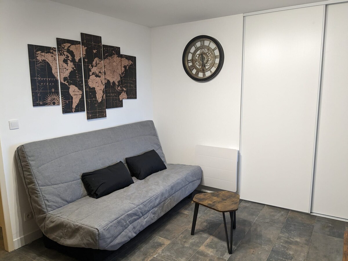 Selamat datang ke Charlotte's Paradise! Studio untuk 2 hingga 4 orang di barisan pertama (pinggir laut), 28 m², cerah, tenang, di tingkat bawah sebuah rumah kecil dari tahun 60-an. Teres tertutup seluas 35 m² yang menghadap terus ke pasir (laut 50 meter jauhnya tetapi pemandangan bukit pasir di hadapan). Siling pada 1.95 meter (6ft 5in). Keseluruhan kebebasan dan pembersihan mendalam antara setiap tetamu.