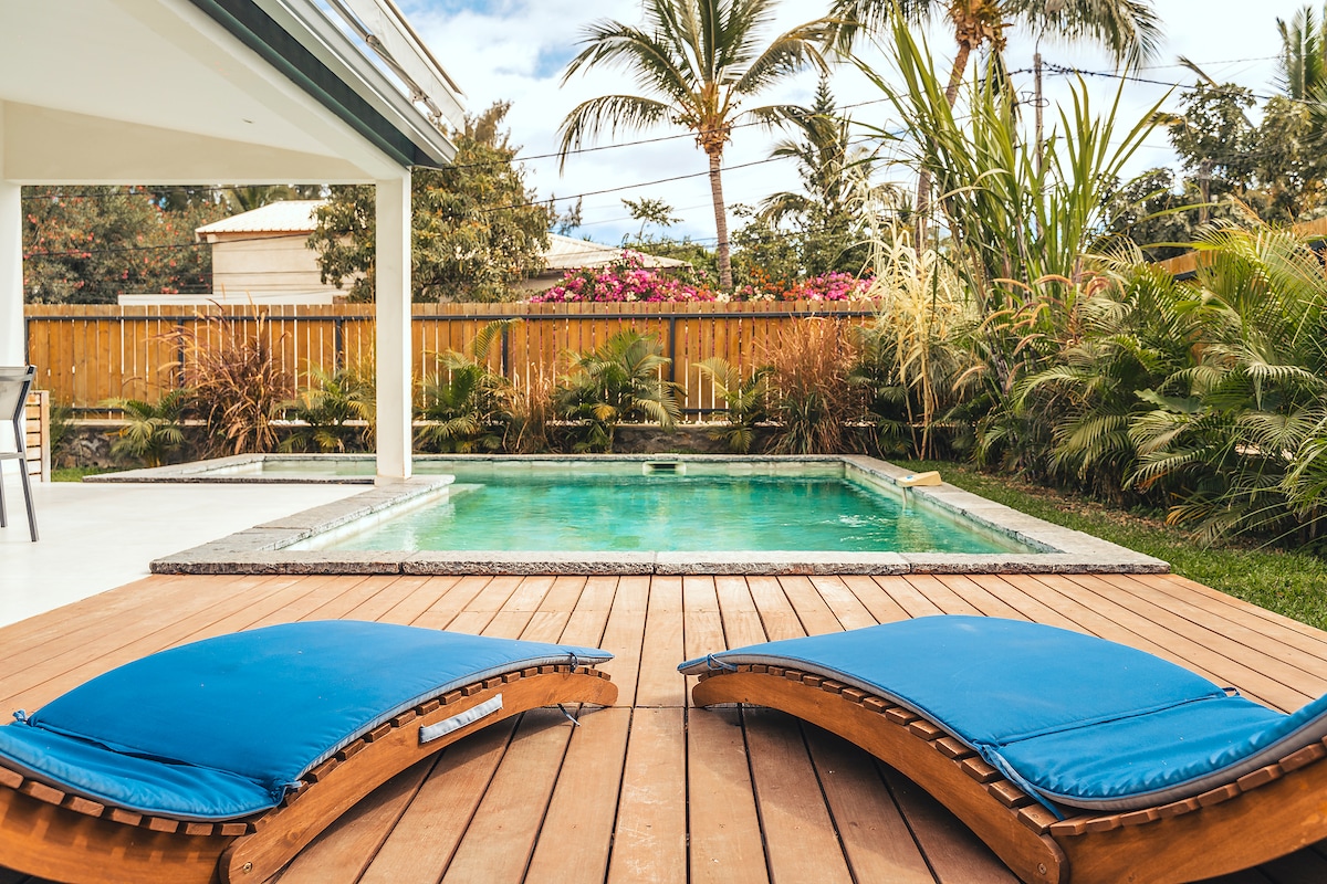 Studio pemandangan laut yang luas dan suasana yang damai Selamat datang ke penginapan berhawa dingin kami yang menawan, terletak di kediaman yang tenang dengan kolam renang. Dari teres kayu yang terlindung, pemandangan taman berhutan, laut dan matahari terbenam yang tidak terhalang. 800 m dari lagun antara Saline-les-Bains dan Saint-Gilles, berhampiran dengan kursus kesihatan, lokasi ideal untuk meneroka pantai paling indah di pulau ini. Akses pantas Route des Tamarins untuk berlepas untuk menerokai keajaiban Reunion.