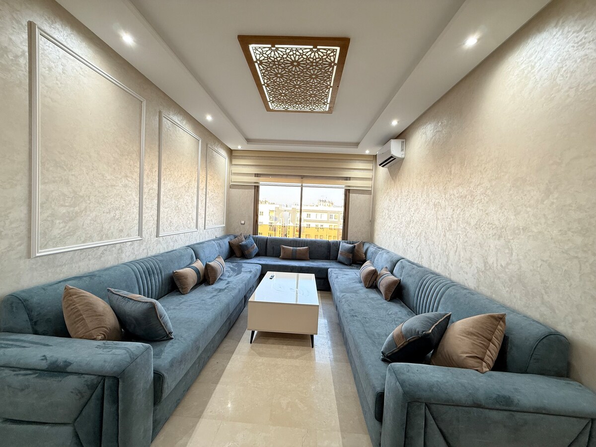 Nikmati apartmen 2 bilik tidur yang bergaya dan moden dengan kolam renang santai di kejiranan Wifaq yang tenang. Dengan tiga teres, ruang tamu yang luas, dan TV besar untuk Netflix & bersantai, rumah ini direka untuk keselesaan. Dapur yang serba lengkap mempunyai semua yang anda perlukan untuk memasak seperti chef. Hanya 10 minit dari Hay Riad, daerah paling berprestij di Rabat dengan kafe dan butik, dan 5 minit dari pantai Harhoura, penginapan yang terletak di lokasi yang baik ini menawarkan gabungan keselesaan dan kebolehcapaian yang sempurna!